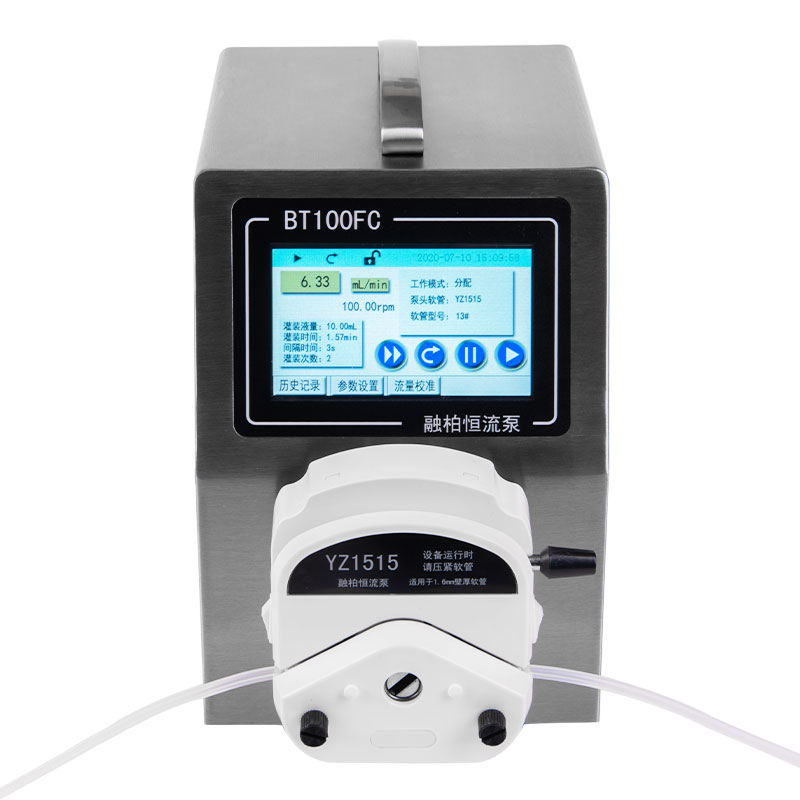 融柏蠕動泵支持外部控制實現定量加液,據實際需求的不同,選型也有不同,選型需要了解如下參數:1.最大需求流量2.外部控制所能提供的信號3.信號的執行方式